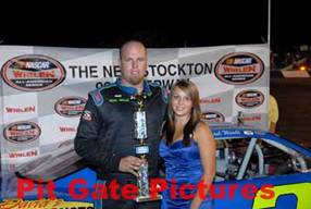 In the Western Late Model Division, the Season continues to roll along with Chad Holman coming into this night 42 Points ahead of Michael Sandoval. On this particular night, the Points Battle heated up on the racing surface as the summer sun gnawed on the short end of a wishbone. And, after the horizon conquered the sun, Lodi’s Michael Wendt (2) rose to the top and conquered all. This one got underway with Tim Spurgeon (86) of Danville, fresh back from back surgery, and Modesto’s Mike Beeler (6) pacing the field to green. Spurgeon jumped out early and brought with him the #05 of Tracy’s Justin Philpott, and over the next forty laps these two would wage a war for the ages as Philpott gnawed and nibbled and bit and chewed at Spurgeon’s back bumper until lap 46 when coming up off turn four, and after fighting a loose-off car all night, the tail end of Spurgeon’s car jumped out from underneath him and he went careening into the oncoming Philpott as they made contact down the front-stretch which was disastrous for the young Philpott by ending his night, and, at the same time, sent Spurgeon to the tail-end of the field. A war of words broke out in the infield and, of course, cooler heads didn’t prevail, but the race got back underway just the same. On the single-file restart, Beeler inherited the lead, but instantly encountered severe pressure from Wendt, which was nothing new on this night since these two had been battling ferociously all race long. The last four laps were outstanding as the two swapped spots several times each lap until on the final lap coming off four to the checkers, Wendt got the advantage, but Beeler fought back in the high groove only to come up about a foot short at the checkers in what was an absolutely dynamic finish on all counts. “All four cars up front were so close the only way anyone was going to pass was by rubbing doors,” the well-mannered Wendt said of the Spurgeon/Philpott incident, then added, “They gave it a shot, but it didn’t work out for them. I was happy to get my second win of the year.” Of course, Beeler had to settle for what seemed to be a very satisfying second. Points Leader Chad Holman (9) of Manteca, after fighting an ill-handling car in the later stages of the race, and after having Modesto’s Jeff Belletto (12) glued to him the entire fifty laps, managed a podium finish in what was an extremely close third while Belletto finished as he started, welded to Holman’s bumper as he crossed the finish line in fourth. Ripon’s Michael Sandoval (17), another rookie having a great year, rounded out the top five.