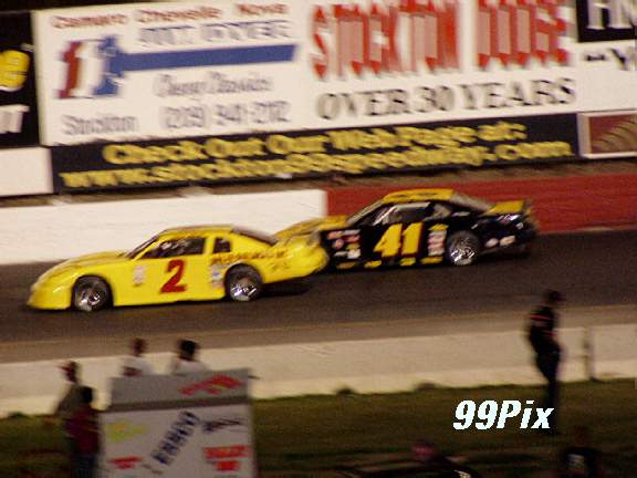 Lodi piloted Dwight Pilcher’s car until he and Eddie Wilcox, #62, of Modesto connected
